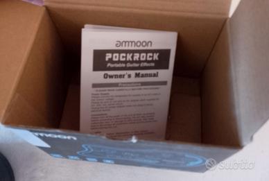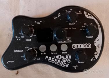 Pedale multieffetto Ammoon PockRock con batteria elettronica integrata. Design a forma di chitarra. - Controlli per Gain, Drive, Tone, Volume. - Effetti: Chorus, Flanger, Phaser, Tremolo, Delay, Reverb. - Funzione Tuner integrata. - Uscita cuffie e Aux In.