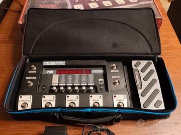 Il Digitech RP500 trasforma la complessità di un sistema di commutazione di effetti nella semplicità degli effetti a pedale. Un arsenale completo di suoni è a vostra disposizione, tutti facilmente controllabili. Se sei un musicista che gestisce il suono attivando e disattivando pedali singoli, attiva il pulsante Pedalboard Mode e utilizza i 5 interruttori a pedale dell'RP500 per attivare gli stompboxes. Se vuoi concentrarti sull'esecuzione, la modalità Preset offre accesso immediato a 5 suoni completamente diversi con la semplice pressione di un interruttore a pedale (100 preset totali in 20 banchi diversi). Ora il Digitech RP500 dispone di un looper di 20 secondi. Caratteristiche principali Looper 20 secondi Modalità Pedalboard esclusiva per traformare l'RP500 in 5 singoli effetti a pedale Amp/Cabinet Bypass disattiva gli amplificatori ed i cabinet in tutti i preset 40 suoni e 40 librerie effetti 200 preset (100 di fabbrica, 100 utente) Oltre 125 tra effetti a pedale, chorus, delay, amplificatori e cabinet Fino a 5 secondi di Delay Time Frequenza di campionamento 24-bit 44,1 kHz Interruttori in metallo LED luminosi per lo stato del programma e degli effetti Ampio display a LED di 10 caratteri per il nome dei preset, dei banchi e dell'accordatore Accordatore cromatico integrato Uscite XLR indipendenti Left e Right con ground lift Uscite 1/4" indipendenti Left e Right Amp/Mixer switch Uscita cuffie stereo 1/8 " Input stereo CD/MP3 1/8" Pedale di espressione integrato per controllare il wah interno, volume, whammy ed altri parametri Cubase LE4 software di produzione musicale incluso X-Edit Librarian incluso Streaming audio 2 x 2 USB CON SCATOLA ORIGINALE E BORSA PER IL TRASPORTO