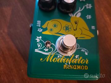 Vendo questo simpatico pedale per chitarra "Ring Modulator" (di base un distorsore con effetti divertenti di modulazione) perfetto, come nuovo. Usato poche volte in studio. Costruzione spartana ma robusta. Vendo per passaggio a modulatore più professionale. Funziona con alimentatore e batteria (9v). Includo batteria.