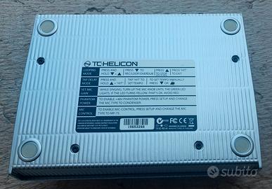 Pedale effetti per voce e chitarrra elettrica o acustica, perfetto per live / sala prove. Perfettamente funzionante. Ha uno striscio sulla parte frontale (visibile in foto). Regalo pedale switch 3 della Digitech utilizzabile per gestire gli effetti voce e/o chitarra del pedale. Stessi effetti del Tc Helicon Play acoustic e molti di più. Con custodia e caricabatteria.