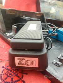 Blues Driver BD-2 Boss, Turbo Distortion DS-2 Boss, Cry Baby GCB-95 Jim Dunlop USA, alimentatore e cavi, valigetta/pedaliera artigianale in legno dipinta a mano.