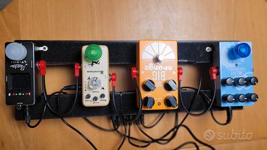 per passaggio a digitale vendo pedaliera chitarra elettrica così composta: base pedana in metallo cm 40 x 13 + strisce velcro accordatore rovin lt901 con funzione accordatore e/o silenziamento segnale Booster Movall Bostaur Overdrive Caline cp54 big orange Riverbero Mvave Mini Universe Alimentatore con 8 uscite isolate cavi di collegamento patch perfetta e pari al nuovo. considerando il prezzo richiesto sotto il 50% del costo della somma di ogni singolo componente nel più noto marketplace internazionale, è da intendersi solo leggermente trattabile.