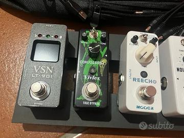 La Borsa e l'alimentatore sono nuovi mai utilizzati così come l'accordatore. Considerate che solo il delay Reecho della mooer costa 80€. Sono tutti dotati di scatola originale tranne il wha wha. Disponibile a qualsiasi prova.