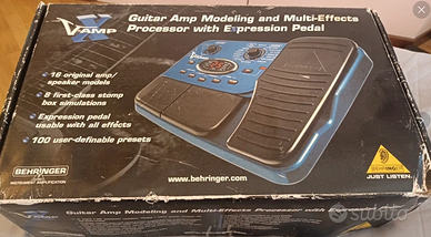 Pedaliera Multieffetto per chitarra elettrica con pedale di espressione. Completa di scatola originale, manuali e alimentatore. La pedaliera è come nuova, perfettamente funzionante. La scatola è un po' rovinata (come da foto), ma integra. Semplicissima da usare nonostante presenti tutti i migliori effetti. Integra anche un accordatore. È di una praticità unica: leggera, ma completa ve la portate dietro sempre e vi fa da coltellino svizzero. Descrizione e specifiche ufficiali: Il X V-AMP è una unità contenente non solo con i migliori modelli di amplificatori V-AMP per chitarra e celebri speaker, ma anche le simulazioni più ambite di stompbox combinate con un pedale di espressione multimodale. 16 modelli di amplificatori con o senza cabinet, compressore, noise gate, EQ, effetti di modulazione, delay e riverbero sono a tua disposizione, utilizza fino a 11 effetti contemporaneamente per un totale di 61 incredibili effetti. Il processore multi-effetti 24-bit stereo ad alta risoluzione comprende non uno solo, ma quattro modelli di simulazioni di stompbox di ciascuna delle seguenti: chorus, flanger, phaser, tremolo, rotary speaker, effetti pitch bend e molti altri, per un totale di 32 effetti di modulazione mozzafiato. Una simulazione acustica speciale e una funzione di amp-bypass è anche inclusa. Il pedale di espressione è assegnabile per controllo in tempo reale degli effetti o come controllo wah/volume. Naturalmente l’alimentatore è incluso. Caratteristiche del prodotto: 16 originali simulazioni di V-AMP/Speaker, inclusa una simulazione acustica Processore multi-effetto stereo a 24bit Effetti wah-wah, delay, chorus, flanger, reverb, noise gate e effetti compressore, etc Pedale di espressione liberamente assegnabile EQ semi parametrico Accordatore cromatico 100 locazioni di memoria modificabili 2 Uscite stereo 1/4″ TRS (Line e Cuffie) Alimentatore incluso Ideato e progettato da BEHRINGER Germania Vista e piaciuta. Consegna a mano a Rho (MI) o spedizione Tuttosubito.