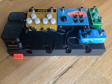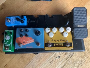 Vendo pedaliera completa per chitatta elettrica con custodia ( vedi foto ) composta da TAPE MACHINE TONE CITY ( diley) , WARPED DIMENSION SONICAKE ( multi effetto composto da chorus, flanger, phaser, tremolo ) KING OF BLUES TONE CITY ( 2 canali ) VOLWAH SONICAKE ( 2 effetti volume e wha ) LOOPER NUX CON DRUM E LOOPER
