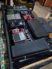 vendo pedaliera, residente in una custodia per chitarra modificata e adattata , presa VDE esterna e collegamenti esterni ,completamente cablata e alimentata.