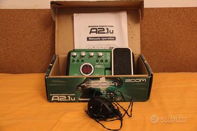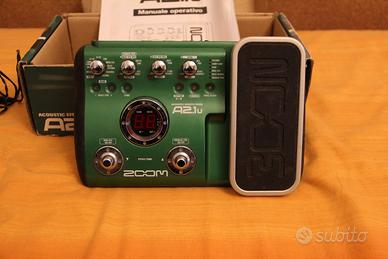 Per esubero vendo pedaliera multieffetto Marca ZOOM A2.1U in ottime condizioni completa di scatola, alimentatore e manuale operativo. Ottimo per suonare con la chitarra acustica è molto sofisticato: ha il pedale di espressione, batteria elettronica incorporata oltre ad effetti di tutti i tipi e funziona da scheda audio. Ha sia l’uscita bilanciata che quella sbilanciata e può funzionare anche a batterie. Per completezza posto le caratteristiche tecniche dell’amplificatore trovate su Internet: