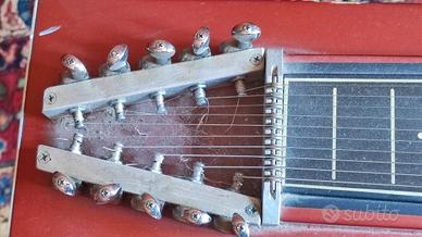 RARA Chitarra Pedal Steel Artigianale – A. Joomets (1994) – 8 Pedali – Made in Estonia Descrizione: 10 corde, interamente realizzata a mano nel 1994 dal rinomato liutaio estone A. Joomets. Si tratta di uno strumento professionale, solido e con una meccanica di precisione, ideale per chi cerca un suono autentico e una configurazione avanzata. Caratteristiche principali: • Produttore: A. Joomets (Estonia) • Anno di produzione: 1994 (Serie Vintage/Custom) • Configurazione: 10 corde con ben 8 pedali a terra, una dotazione superiore allo standard che offre possibilità espressive e armoniche eccezionali. • Condizioni: Lo strumento è in ottime condizioni estetiche e funzionali. La meccanica è fluida e tiene perfettamente l'accordatura. • Suono: Timbro caldo, cristallino e ricco di sustain, tipico delle migliori produzioni artigianali europee degli anni '90. Questo modello è perfetto sia per il country classico che per generi più sperimentali, jazz o ambient, grazie alla flessibilità offerta dagli 8 pedali. Un pezzo unico nel panorama italiano, difficile da reperire sul mercato dell'usato. Consegna: Si preferisce il ritiro a mano data la delicatezza e il peso dello strumento. Possibilità di prova sul posto.