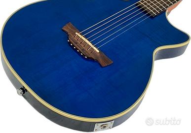 Meravigliosa Chitarra, Condizioni Mint, bellissima e performante, ottimo setup di base, action molto agevole. Il manico conferisce la fluidità e leggerezza di una chitarra elettrica. Suono eccezionale, nessun innesco, perfetta in ogni cosa e per ogni situazione. Il Pre, di riferimento, offre una varietà di suoni, colori e dinamiche al Top per questo genere di Chitarre Acustiche. Vendo solo per smaltire per progetto finito. Ne ho due. Chitarra elettroacustica Crafter CT-120 TBU trasparente. Raro esempio di questa fantastica chitarra da suonare, con una desiderabile finitura Natural trasparente. NOME DEL MODELLO: CT120/TBU STILE DEL CORPO: Linea sottile TOP: acero RETRO: Legno massello FIANCHI: Legno massello MANICO: Mogano LARGHEZZA AL DADO: 43mm (1 11/16") TASTIERA: Palissandro indiano LUNGHEZZA SCALA: 647,7 mm (25 1/2") NO. DI TASTI: 21 TESTE DELLA MACCHINA: Sintonizzatori cromati pressofusi PONTE: Palissandro indiano FERRAMENTA: Cromato ELETTRONICA: Nuovo preamplificatore LR-F Plus con pick-up L.R.Baggs COLORE: TBU Trasparente FINITURA: Satinata