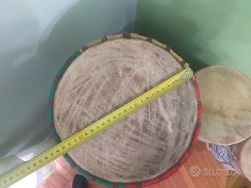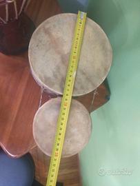 vendo percussioni artigianali, di origine africana. Uno singolo in legno, corda e pelle naturale, e l'altro in coppia realizzato in ceramica dipinta e pelle. Cedesi in blocco per inutilizzo.