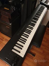 Strumento versatile, progettato per esecuzioni live, che per registrazioni. Piano digitale di qualità e di agevole trasportabilità, pesa meno di 9kg. Uno strumento dalla struttura solida, 88 tasti semi-pesati con sensibilità al tocco. In quanto equivalente ad un "Piano da palco", per l'ascolto, non in cuffia, necessita di amplificatore esterno (Vedi connettori in foto 4). Il piano digitale ProKeys 88sx garantisce un suono eccellente, fino a 126 note di polifonia, in particolare: > Grand Piano (2 livelli di velocità) > Piano 2 > Fender Rhodes (2 livelli di velocità) > Wurlitzer E.P. (2 livelli di velocità) > E.P. classico FM Yamaha DX7 > Organo Hammond B3 con percussione > Clavinet. Ingressi: MIDI out, USB, 2 uscite audio stereo, 2 ingressi jack per cuffie stereo L'interfaccia MIDI USB e le ruote pitch e modulation si combinano con altre funzioni che lo rendono anche un eccezionale controller MIDI. Altra particolarità, lo strumento è anche adattissimo per lo studio del pianoforte che, grazie ai due ingressi per 2 cuffie (foto 5), permette allo/a allievo/a da solo/a - o insieme all'insegnante - di suonare/esercitarsi senza problemi per il vicinato. Dotazione: alimentatore e pedalino sustain. Nel prezzo sono compresi anche custodia morbida imbottita e supporto in metallo, come nuovi. CONSIDERATE LE DIMENSIONI (LxPxH) 136 x 25.5 x 10 cm, PREFERIREI vendere in zona Catania.