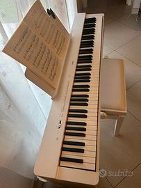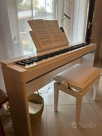 acquistato nuovo nell'anno2024, usato pochissimo. Vendo completo di tutti gli accessori: base di appoggio bianca, panca di seduta bianca, leggio, interruttore a pedale, adattatore, libretto di istruzioni.