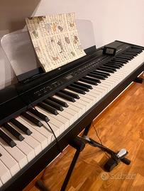 Vendo a metà del prezzo originale piano digitale praticamente nuovo mai usato, funziona perfettamente. Incluso anche il pedale e il supporto. I tasti sono pesati, e il piano ha numerosissime funzionalità: ha un metronomo integrato regolabile; può simulare il suono di chitarra, organo, clarinetto, voce e tanti altri; permette di registrare e riprodurre fino a due tracce (durante la riproduzione permette di continuare a suonare).