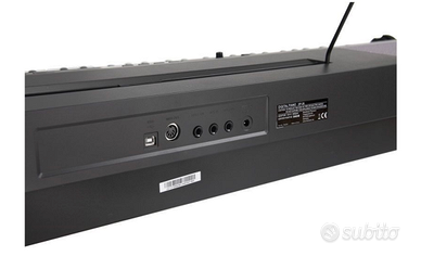 88 tasti; tastiera pesata; 2 casse 10W; polifonia a 64 note; funzione layer e split; funzione di insegnamento per mano destra e sinistra; metronomo; transposer; Accessori inclusi : leggio, pedale sustain, alimentatore. Dimensioni 1,36m x 36,6cm x 13,7cm peso 12,9kg 2 uscite cuffie, un ingresso per il pedale sustain, Uscita MIDI e USB-MIDI ; Ausiliario, Ingresso e uscita ; Memoria da USB a Host. Usato pochissimo, vendo per cambio modello.