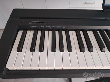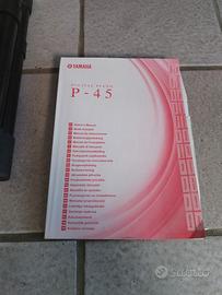 Vendo il riferimento dei pianoforti digitali per studenti: Yamaha P-45 con 88 tasti pesati (Graded Hammer Standard). Condizioni ottime, meccanica dei tasti perfetta e silenziosa. Usato pochissimo. Il kit è completo di: - Pedale Sustain originale - Alimentatore - Supporto a X Rockjam (molto stabile) - Supporto leggio - Adattatore Jack cuffie Dati peso e ingombro, NON EFFETTUO SPEDIZIONE. Ritiro a mano obbligatorio a Torino. Avrete modo di provarlo eventualmente prima dell'acquisto. Non scambio, prezzo commisurato alle condizioni e agli accessori.