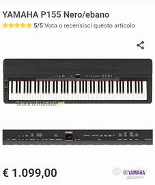 PIANO DIGITALE 88 TASTI PESATI YAMAHA P155 PERFETTO COME NUOVO. completo di stand leggio e pedale. vendo perchè ho acquistato un pianoforte. consegno prefeibilmente a mano o SOLO UPS con tuttosubito Dotato di suoni campionati da un pianoforte "top-of-the-line" CPIII da concerto e di una tastiera 88 tasti Graded Hammer Action, il piano digitale Yamaha P155 è semplicemente un pianoforte a coda di qualità professionale che si può portare sotto un braccio. Grazie alle migliori tecnologie Yamaha quali metodi di campionamento avanzati e tastiera GH (Graded Hammer) ultra-espressiva, i musicisti non devono più scegliere tra maneggevolezza e qualità: la qualità di cui si dispone è quella che ci si aspetta da un'azienda che costruisce pianoforti acustici da oltre un secolo. Con il P-155 Yamaha ha racchiuso la tradizione in una struttura affusolata. Caratteristiche principali Campionamento Pure CF con Advanced Wave Memory (AWM) Dynamic Stereo a 4 livelli Campionamenti Key-Off, Stereo Sustain e Damper Resonance Polifonia 128 note Tastiera 88 tasti Graded Hammer (GH) Connessione USB per memorizzare e riprodurre musica Sensibilità al tocco: Hard/Medium/Soft/Fixed Display: LED a 7-Segmenti, 3-Cifre Teconologia di Generazione Sonora: AWM Dynamic Stereo Sampling Livelli Dinamici: 4 Stereo Sustain Samples Key-Off Samples Numero di Voci Preset: 17 Effetti: Reverb, Chorus, Brilliance Funzioni: Dual/Layers, Split Preset Song: 50 Registrazione: 3 Song, 2 Tracce Capacità Dati: Brani Utente 100KB x3, Brani esterni 447KB Formato Dati Compatibili: Riproduzione SMF (Format 0&1), Registrazione SMF (Format 0) Metronomo Tempo Range: 32 - 280 Transpose: -12 to 0, 0 to +12 Tuning Tipi di Scala: 7 Memoria interna: 100KB x3 (ca. 11000 note x3) Connettività: DC In 16V, 2x Cuffie, Pedale Sustain, MIDI In/Out, AUX OUT [L/L+R][R], AUX Pedal, USB TO DEVICE Amplificatore: 2x 12W Speaker: (12cm x 6cm) x 2 Alimentatore: (PA-301/PA-300B) Accessori inclusi: Leggio Dimensioni: 1334 x H140 x 351mm Peso: 18,6kg