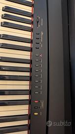 Piano elettrico Yamaha YPP-50, con pedale sustain. Il piano è funzionante ma alcuni tasti nelle ottave basse non suonano, mi è stato detto servirebbe manutenzione al tappeto sotto tastiera. Due piccole scheggiature nella plastica del leggio.