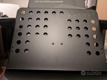 Piano leggio Gravity con attacco per aste microfoniche con filettatura piccola (3/8"). Nuovo, mai usato, acquistato su Thomann, è compreso l'imballaggio originale come da foto.