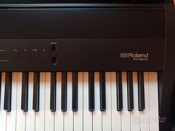 Vendo una ottima Tastiera pesata Roland FP-60X, ottime prestazioni, ottimi suoni, tutto perfettamente funzionante, con custodia morbida originale. Possibile spedizione ma preferibile ritito in zona. Caratteristiche •Generatore sonoro SuperNATURAL Piano, per una ricca espressività, dal pianissimo al fortissimo •Raffinati timbri interni per ogni genere musicale, inclusi piani elettrici, organi, archi e sintetizzatori •La funzione interna Piano Designer offre dettagliate capacità di personalizzazione del timbro di pianoforte •Tastiera PHA-4 Standard per un tocco dall'autentico stile acustico •Sistema di diffusori interno da 26 Watt, per un suono ricco e profondo •Funzione Headphones 3D Ambience per un timbro naturale quando vi esercitate in cuffia •Un look moderno e attraente basato sul design premiato della generazione precedente della serie FP •Connettività Audio e MIDI via Bluetooth e USB •Doppia presa cuffie per esecuzioni a quattro mani e per una completa interazione tra insegnante e studente •Ingresso microfonico ed effetti dedicati alla voce •Stand e unità a tre pedali opzionali disponibili per la configurazione come piano verticale (KSC-72, KPD-90) o per l'utilizzo portatile (KS-20X, RPU-3) •Dimensioni (senza leggio): 1291x 344 x H126mm •Peso: 19,3kg