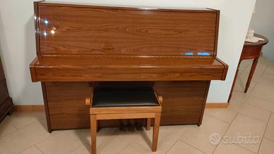 Pianoforte verticale Yamaha (codice nella foto), in legno marrone, costruito in Giappone (non in Indonesia). Robusto, in condizioni molto buone, perfettamente funzionante. La panca è compresa nel prezzo.