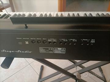 Pianoforte Orla stage studio il top della gamma usato in perfette condizioni e completo di leggio,pedale sustain, alimentatore originale di fabbricazione Italiana adatto per chi studia musica, e da palco . è predisposto per collegamento a computer,tablet smartphone tramite ingresso bluetooth e USB dinamica tasti comparabile a pianoforte acustico per queste caratteristiche è consigliato dai maestri di pianoforte metronomo incorporato e altre voci di strumenti dato il peso e la sua fragilità preferisco il ritiro a mano dopo visione e prova spedizione possibile con responsabilità a cura del compratore prezzo di pochissimo trattabile