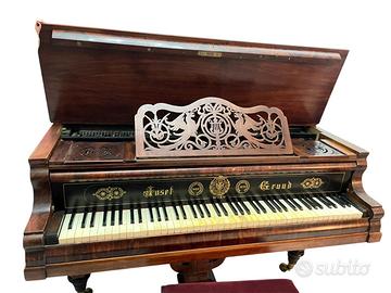 Pianoforte a coda con cassa in legno modello Josef Grund 1873 . Necessita accordo da tecnico specializzato.