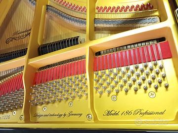 Pianoforte a coda REISENBCH Mod. 186-Professional, nero lucido, 88 tasti, 3 pedali, matricola visibile in foto.