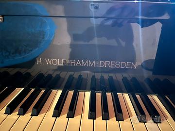 Offro uno splendido pianoforte a coda realizzato artigianalmente da H. Wolfframm di Dresda. Il pianoforte si trova in condizioni eccellenti, con un volume sonoro impressionante.