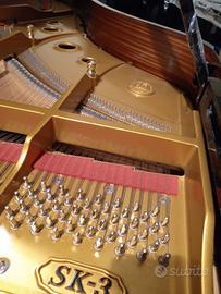 Il pianoforte a coda Shigeru Kawai modello SK-3 nero lucido, matricola 2400825 è in ottime condizioni. Esso è caratterizzato da un timbro luminoso e brillante, caratteristica dei pianoforti giapponesi, e presenta un'ampia gamma dinamica. La tavola armonica rastremata in abete massiccio riesce a massimizzare la sua capacità di produzione del suono. La meccanica Kawai nacque da una branca di sperimentazione nei laboratori della Yamaha. Kawai nella sua ricerca non si è mai fermata dall'inizio del 900 ad oggi. Nella versione odierna utilizza una nuova meccanica ricca di tecnologia e materiali compositi come ABS e fibre di carbonio che permette al pianista una ripetizione più veloce e precisa, una maggiore potenza, ed un controllo migliore con minor fatica. Tutto ciò è permesso grazie al ridotto peso degli organi della meccanica senza sacrificarne la robustezza. Il suono che scaturisce da questa meccanica è, a confronto della sorella Yamaha, più caldo, con una zona dolce nel registro medio, una minore aggressività negli acuti, pur restando un timbro dai tratti asiatici.