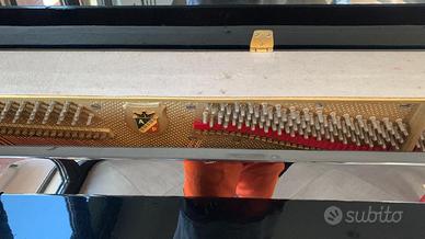 Pianoforte fermo da un po’ di anni ma perfettamente funzionante è solo da accordare. Presenta un’ ammaccatura dovuta ad uno spostamento, per il resto è in buone condizioni. Completo di sgabello