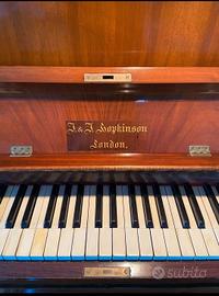 Pianoforte J& Hopkinson London 1926, finitura noce lucido, 88 tasti, 3 pedali, buono stato sia della tastiera che nel legno, completo di sgabello rettangolare regolabile e lampada illumina tastiera. Trasporto a carico dell'acquirente