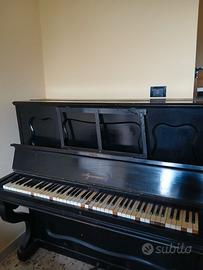 Il pianoforte non è funzionante (scordato, tasti ammaccati) e ha telaio in legno, tipico degli strumenti storici.