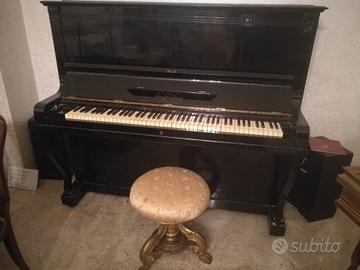 Pianoforte verticale vintage da restaurare, marca FIP (produzione italiana) con sgabello dorato per seduta, originale Luigi XVI, euro 300 trattabili