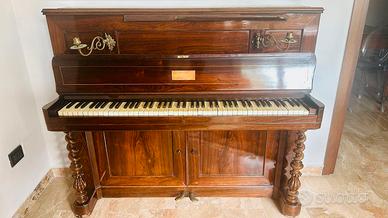 Vendo pianoforte d'epoca (anni '40 circa), appartenuto alla mia famiglia,con tastiera in avorio autentico e struttura in pregiato legno di palissandro. La cassa ha una curvatura elegante a forma di arpa ,rara e ricercata, ben conservata con gambe tornite e pedaliera originale in ottone.Restaurato nel 2008 (meccanica e legni), attualmente da riaccordare causa traslochi. E' uno strumento storico e un pezzo d'arredo di pregio ideale per collezionisti, appassionati o arredamenti classici ed eleganti.