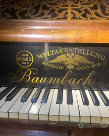 Vendo pianoforte a mezza coda d’epoca Ios. Baumbach, autentico strumento di fine Ottocento.