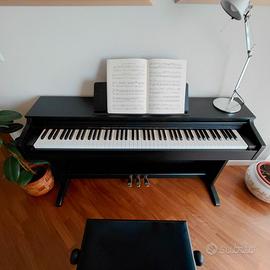Vendo pianoforte digitale con mobile usato, in perfette condizioni, marca CASIO, modello AP-270 CELVIANO, adatto a principianti e studenti di musica. Lo strumento ha 88 tasti pesati, tre pedali, una vasta gamma di suoni (tra cui organi, pianoforti elettrici, archi) e di funzionalità, leggío mobile, doppio ingresso jack per cuffie e altoparlanti, ingresso USB. Acquistato recentente, non presenta segni di usura.