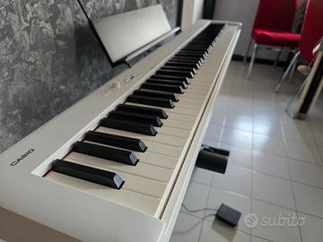 Vendo pianoforte digitale Casio CDP-S110 in colore bianco, in ottime condizioni estetiche e funzionali. Strumento ideale sia per principianti che per musicisti esperti che cercano compattezza e qualità. Caratteristiche principali: 88 tasti pesati con finitura opaca (Scaled Hammer Action Keyboard II) per un feeling simile al pianoforte acustico. Design ultra sottile e leggero, perfetto per chi ha poco spazio. Suono di alta qualità con 10 timbri diversi. Collegamento USB al computer o tablet (compatibile con app Chordana Play). Incluso nel prezzo: Supporto a X (stabile e regolabile). Copertura protettiva nera (custodia antipolvere come da foto). Leggio originale e pedale sustain. Alimentatore originale. Condizioni di vendita: Luogo: Ritiro a mano in zona Roma - Colli Aniene. Spedizione: NON effettuo spedizioni. Prezzo: Euro 250€. Prezzo fisso, non trattabile. Contattatemi solo se realmente interessati. No perditempo.