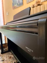 Ha 88 tasti pesati, pedaliera completa e un suono di pianoforte realistico.