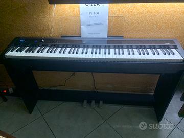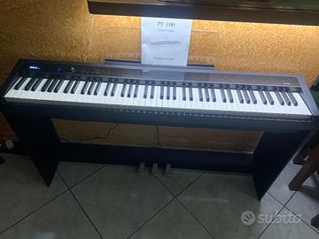 Orla presenta il suo pianoforte digitale con 88 tasti e meccanica a martello pesata. Grazie alla tastiera in scala realistica, il PF100 è adatto a tutte le famiglie e scuole di musica. I buoni suoni e la sensazione di suonare come un pianoforte in legno rendono il PF100 una stella tra pianoforti digitali simili in questa fascia di prezzo. Puoi scegliere tra un totale di 10 suoni tra cui pianoforti acustici ed elettrici, clavicembali, archi, voci, organi, suoni di chitarra. Puoi sovrapporre 2 suoni qualsiasi o dividerli sulla tastiera.