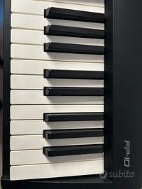 Pianoforte digitale - 88 tasti con azione a martelletto (tasti pesati) - Tastiera standard PHA-4 - Massimo 96 voci polifoniche - Tecnologia SuperNATURAL: 4 pianoforti, 2 pianoforti elettrici e 9 strumenti aggiuntivi come organo e archi, effetti sonori - Modalità Twin Piano - 2 zone divise - Funzione Layer - Metronomo integrato - Bluetooth 4.0 per funzionalità MIDI wireless - Collegamenti: mini-jack stereo da 3,5 mm per cuffie, USB-A, USB-B, ingresso per pedale sustain - Altoparlanti integrati: 2x 6 watt - Dimensioni (L x P x A): 1284 x 258 x 140 - Include alimentatore, leggìo e pedale ——— 👉BELLISSIMA SACCA IMBOTTITA per trasporto 👉 SEGGIOLINO trasportabile ———- 🚛 ritiro a Milamo, zona tribunale ———- DESCRIZIONE Tastiera affidabile e suono accattivante Il Roland FP-10 è creato per musicisti attenti alla ricerca di uno strumento economico e affidabile dotato di un suono eccezionale, una tastiera adeguata, estrema trasportabilità e altoparlanti integrati. E l'FP-10 eccelle in tutti questi campi, soprattutto in fatto di prezzo! L'autenticità, sia tonale che fisica, si nota soprattutto nei dettagli come la risonanza delle corde, la sordina e il rilascio dei tasti, tutti meticolosamente progettati per funzionare con il massimo realismo. Gli 88 tasti dinamici pesati di ultima generazione sono altamente reattivi, pieni di dettaglio e splendidi da suonare. È uno strumento facilissimo da trasportare e da usare, visto che ha solo quattro pulsanti di controllo. È possibile mettere a punto i parametri direttamente sull'FP-10 o, caratteristica interessante, tramite un'app esterna. Inoltre, grazie alla connettività USB e Bluetooth wireless, trasmettere MIDI è semplice.