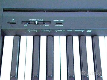 Digital Piano Yamaha P-45 (Pianoforte digitale), 2018, come nuovo, usato pochissimo, tastiera 88 tasti, suono acustico autentico, vari suoni: organo, hammond, violini, ecc., altoparlanti incorporati, leggio, alimentatore e pedale sustain, uscite cuffie, PC e amplificatore, custodia morbida imbottita, libretto istruzioni, Euro 300 (Il supporto visibile nelle foto non è compreso).