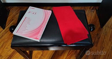 Vendo pianoforte digitale Yamaha P45B, compreso di leggio originale, stand L-110B, e sgabello per pianoforte regolabile Gear4music, Nero Opaco. Il tutto funzionante ed esteticamente perfetto è stato usato pochissimo. Sono compresi: pedale sustain originale, alimentatore e copritastiera in panno rosso. Vendo, a chi interessato, solamente ritirandolo presso la mia abitazione, sita in Bologna città (zona Murri)