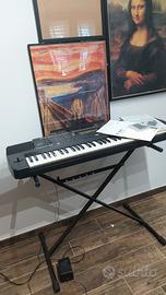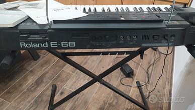 Vendo Roland E-68 compresa di cavalletto, leggio, manuale d'istruzione, cartucce per basi musicali. Usata poco, tenuta sempre coperta a riparo da luci e sbalzi termici. Piccoli difetti dati dal tempo nel rivestimento di gomma delle casse, come visibile in foto.