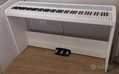 Pianoforte elettronico Korg B2SP, dotato di diverse timbriche, tasti pesati con tecnologia NH (che simula la meccanica di un pianoforte a corda), in elegante colore bianco.