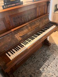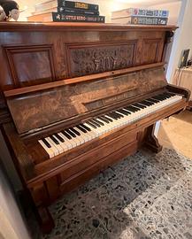 Vendo pianoforte verticale originale Hupfer, Zeitz, strumento d’epoca di grande fascino e presenza scenica. Il pianoforte è realizzato in legno massello con impiallacciatura venata e presenta splendidi dettagli intagliati sul pannello frontale, con motivi decorativi e figure in rilievo che lo rendono anche un vero elemento d’arredo. Linea elegante, tipica della produzione tedesca di fine Ottocento / inizio Novecento. La tastiera è completa e in buone condizioni estetiche. Il mobile è solido e ben conservato, con normali segni del tempo che ne testimoniano l’autenticità. Ideale sia per chi cerca uno strumento da studio (da accordare/revisionare), sia per chi desidera un pezzo di carattere per arredamento o ambienti creativi. 📍 Visionabile su appuntamento 🚚 Trasporto a carico dell’acquirente Per qualsiasi informazione o ulteriori foto, scrivimi pure.