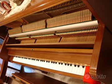Ottimo pianoforte dotato di meccanica robusta, acquistato per studio nel 1980 circa ed utilizzato poco e solo da me. Stile classico in legno color mogano raffinato ed elegante. In foto tutti i particolari, lievissime escoriazioni dovuto agli anni, ma tastiera e meccanica perfette. Ultima accordatura lo scorso anno. In regalo il sedile, il copri tastiera e tutta la documentazione d'acquisto e manutenzione rilasciatami da Napolitano con chiave di sicurezza. In vendita ad oltre 6000 $....lo cedo per trasloco insieme a libri e partiture omaggio in gran quantità. Ritiro a cura dell'acquirente...ma posso suggerire soluzioni.