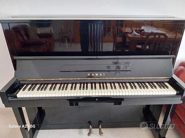 Vendo pianoforte Kawai verticale modello K8, due pedali, sordina a leva manuale, nero lucido, finiture dorate. Buono strumento da studio, da accordare, valutato da professionista.