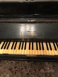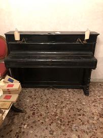 pianoforte verticale nero d'epoca, probabilmente di marca Erard