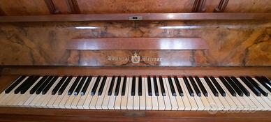 Pianoforte acustico verticale in radica di noce, tastiera in avorio, telaio in ghisa a corde incrociate, 2 pedali, con sgabello. Ritiro a carico dell'acquirente. Prezzo trattabile.