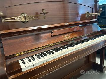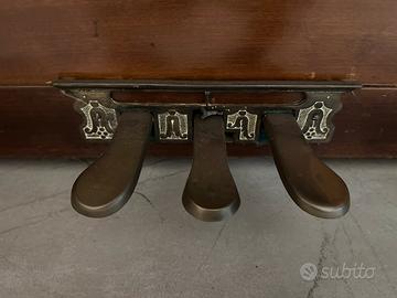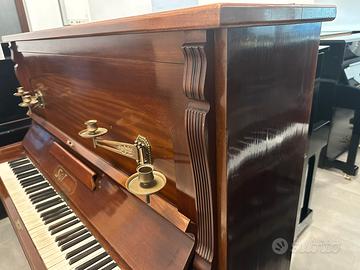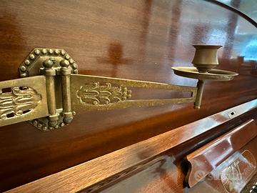 Pianoforte verticale della marca SOT di Trieste, tre pedali, meccanica in ottimo stato e revisionata come si evince dalle foto, mobile vintage con doppio porta candele originale. Mobile noce elegante nel suo stile e nelle sue lavorazioni, suono caldo e ricco di armonici